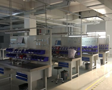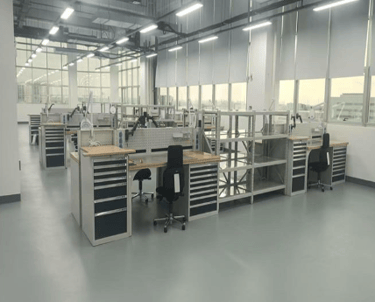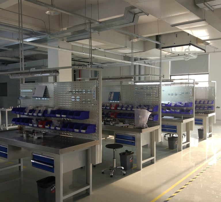 To support high-precision electronic assembly tasks, we provided a full layout of anti-static workbenches equipped with: