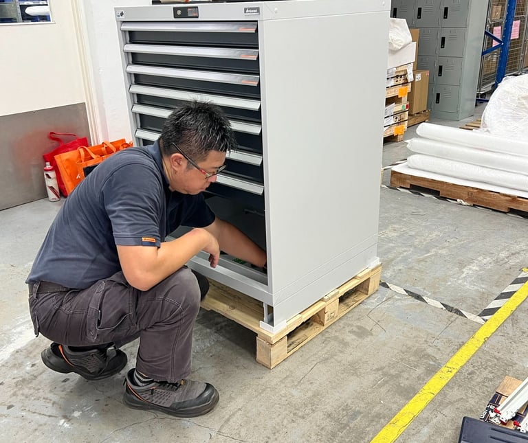 This attention to detail guarantees that clients receive ready-to-use, factory-grade storage systems—trusted by manufacturers, MRO teams, and warehouse operators across Southeast Asia.