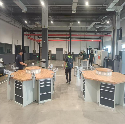 This setup creates a professional, efficient, and visually impressive space—ideal for technical schools, training centers, and advanced manufacturing labs.
