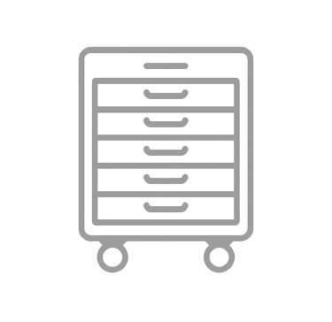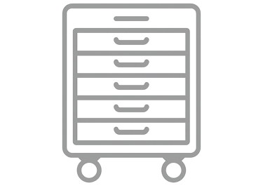 Sturdy chassis with 2 ball-bearing fixed wheels and 2 castors (with parking brake) (⌀ 160 mm). The stiles are positively fitted to the chassis and the push handle, and bolted to them. Side panels are perforated with a 25 mm grid to accept carrier rails and tool carriers.